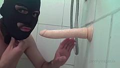College Student With Huge Cock Jerks Off In The Study And Cums On Her Leg
