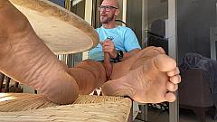 Buff Bearded Hunk Jerks Off While Black Homo Sucks His Toes
